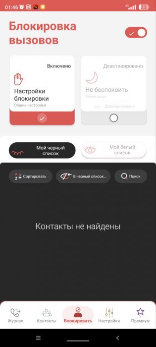 • Фильтр вызовов из черного списка на вашем устройстве.