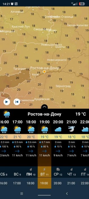 Доступные показатели погоды - PREMIUM• Ветер (16 уровней)