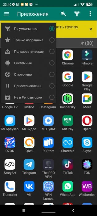 ФаворитыПомечайте приложения как фавориты, чтобы находить их легко и быстро. Тогда ваши любимые приложения будут всегда размещены в начале списка, когда включена сортировка по имени. Используйте фильтры, чтобы видеть только фавориты.