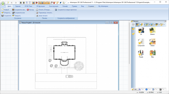 Расширенный каталог объектовAshampoo® 3D CAD Professional популярна также из-за огромного количества включенных в неё 3D-объектов. Выбирай из множества подходящих 3D-объектов и более 250 готовых к использованию групп объектов в каталоге объектов! Каталог включает в себя группы, полные готовых гаражей, кухонных линий, садовых домиков и саун. Создавай свои собственные папки и используй их непосредственно в каталогах. Удобнее и быть не может! Попробуй программу, которая практически не устанавливает ограничений для тебя и твоих проектов!