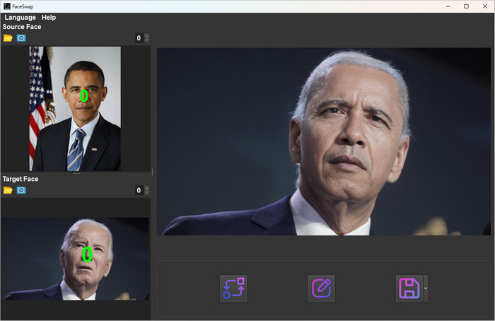 Алгоритм определяет важные ориентиры лица, такие как глаза, нос, рот и т. д., чтобы понять структуру и ориентацию каждого лица. Затем лица выравниваются, чтобы гарантировать, что соответствующие черты лица (глаза, нос, рот) точно совпадают на исходном и целевом лицах.