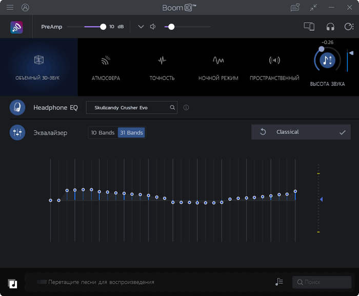 31-полосный эквалайзер и предустановки.Эквалайзер позволяет вам модулировать звук только с помощью слайда и сохранять их в качестве пользовательских пресетов. Предустановки были тщательно обработаны в разных жанрах музыки, чтобы вы могли просто набирать аудио в соответствии с вашими настроениями.