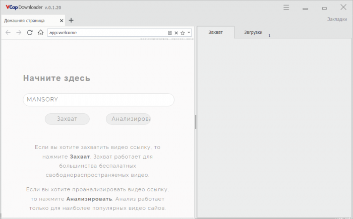 VCap Downloader — универсальное программное обеспечение, позволяющее захватывать видео и аудио с интернет-сайтов. Интерфейс программы напоминает интерфейс обычного браузера, что облегчает пользователю знакомство и работу с данным программным обеспечением. Пользователю просто нужно скопировать URL-адрес видео из любимого браузера и перенести его в VCap Downloader. VCap Downloader захватит видео и предложит доступное качество для загрузки. Вы также можете извлечь звуковую дорожку из любого видео и преобразовать ее в формат MP3.