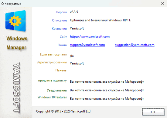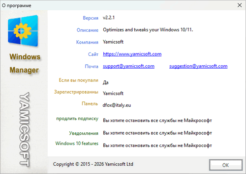 Windows Manager - это универсальная утилита для Microsoft Windows 10/11, включающая в себя более сорока различных утилит для оптимизации, настройки, очистки, ускорения и ремонта Windows 10/11, помогающая ускорить работу системы, устранить системные ошибки, повысить стабильность и безопасность, персонализировать вашу копию Windows 10/11 и оправдать все ваши ожидания.