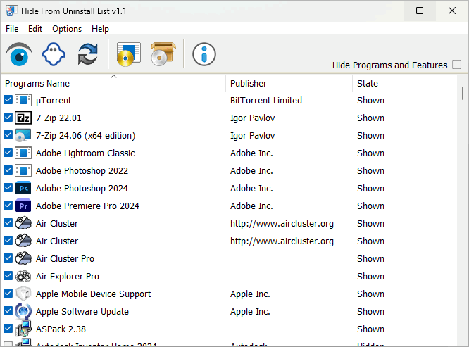 Скачать программу Hide From Uninstall List 1.1 (1,04 МБ):