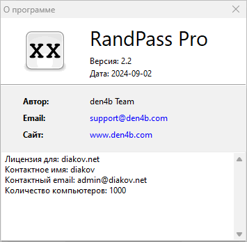 RandPass Pro - простой инструмент для генерации случайных паролей на основе набора символов, заданной выходной формат может быть изменен. Пользователь может легко выбрать группы символов, используемых в пароле как строчные буквы, прописные буквы, цифры, указать настраиваемые символы и формат паролей, только проверить, снять похожими персонажами и многое другое.