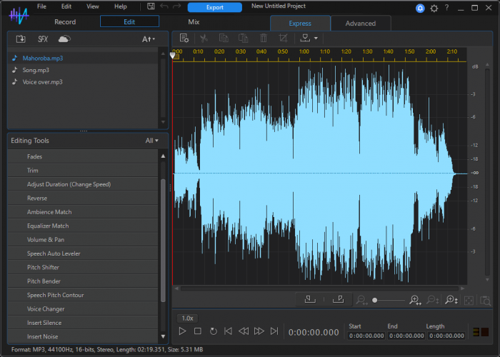 CyberLink AudioDirector – мощный инструментарий для обработки музыки, который можно бесплатно скачать на diakov.net. AudioDirector позволяет создавать собственные саундтреки с помощью многодорожечной записи, использовать средства микширования, автоматически удалять шумы и помехи и выполнять восстановление аудио. Благодаря возможности воспроизведения видео параллельно с редактированием звука пользователи AudioDirector могут синхронизировать корректировки аудио с картинкой. AudioDirector предлагает поддержку широкого ряда видео- и аудиоформатов, а также многоканального звука.