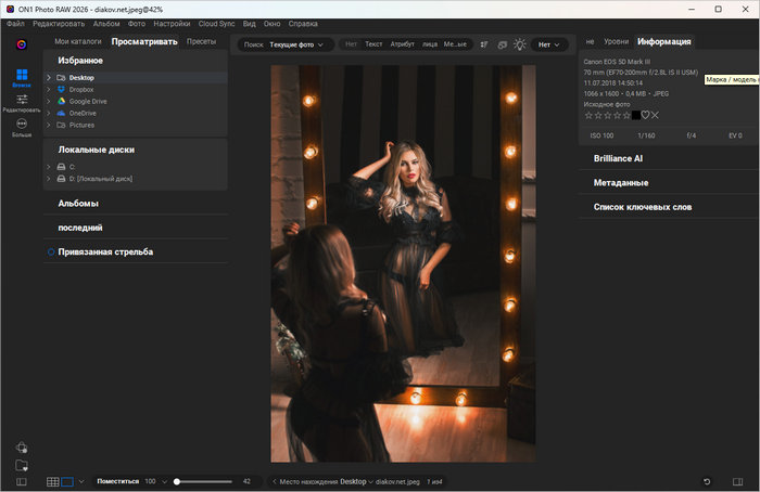 ON1 Photo RAW 2026 — лучший редактор фотографий в формате RAW для фотографов, ищущих альтернативу Photoshop и Lightroom без подписки. Это мощное программное обеспечение предлагает полный набор расширенных инструментов редактирования, включая функции на базе искусственного интеллекта, недеструктивное редактирование и точный контроль цвета. Благодаря поддержке файлов RAW с более чем 800 камер и совместимости с форматами JPEG, TIF, PSD и другими, оно подходит профессионалам, любителям и новичкам. ON1 Photo RAW 2025 также предоставляет функции организации фотографий, что делает его комплексным решением для редактирования, ретуширования и управления фотографиями в одном приложении.