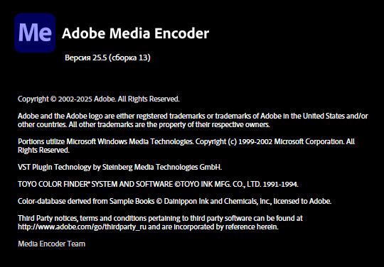 Скачать программу Adobe Media Encoder 2025 v25.5 (1,92 ГБ): Скачать программу Adobe Media Encoder 2025 v25.4.1 MacOS (2,31 ГБ):
