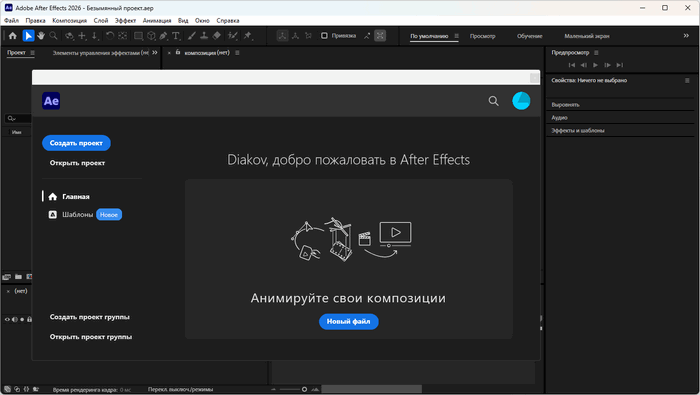 Adobe After Effects — популярная программа для редактирования видео и динамических изображений, создания композиций, различных эффектов и анимации, которую можно бесплатно скачать на diakov.net. Наиболее часто ее используют для обработки видеоматериалов (постпродакшн), создания музыкальных клипов, рекламных роликов, анимации, титров, а также множества других элементов, для которых необходимы цифровые видеоэффекты.