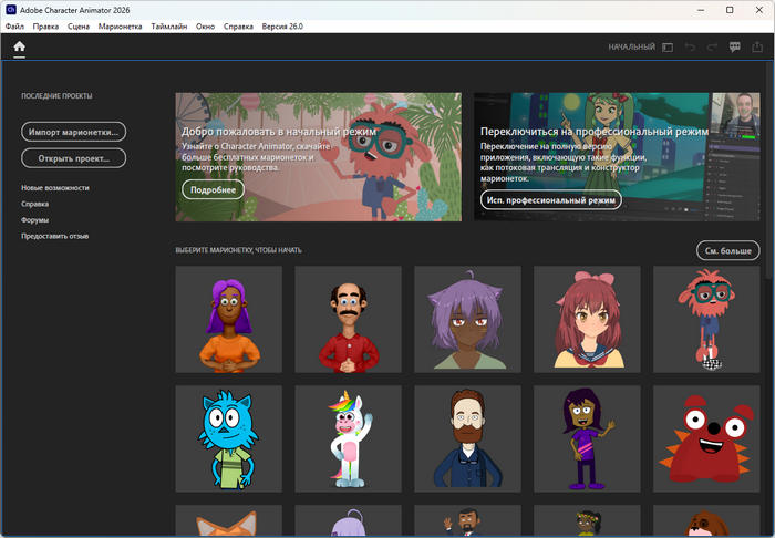 Скачать программу Adobe Character Animator 2026 v26.0 (1,78 ГБ):