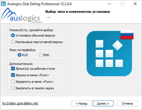Данные и диски ⇒ Auslogics Disk Defrag Professional 12.1.0.1