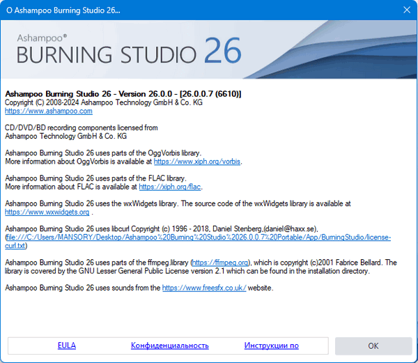 Скачать программу Ashampoo Burning Studio 26.0.0.7 Final (230,5 МБ):