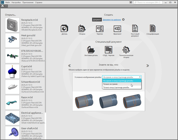 - Автоподбор резьбы по указанному отверстию во всех соединениях