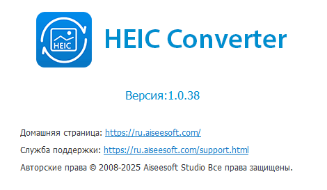 Скачать программу Aiseesoft HEIC Converter 1.0.38 (18,39 МБ):