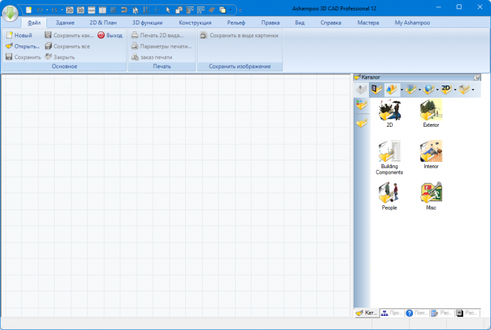 Расширенный каталог объектовAshampoo® 3D CAD Professional популярна также из-за огромного количества включенных в неё 3D-объектов. Выбирай из множества подходящих 3D-объектов и более 250 готовых к использованию групп объектов в каталоге объектов! Каталог включает в себя группы, полные готовых гаражей, кухонных линий, садовых домиков и саун. Создавай свои собственные папки и используй их непосредственно в каталогах. Удобнее и быть не может! Попробуй программу, которая практически не устанавливает ограничений для тебя и твоих проектов!