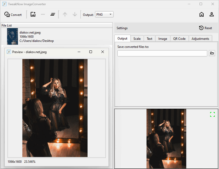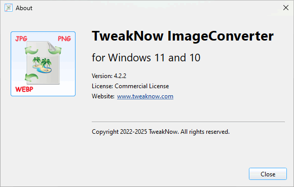 TweakNow ImageConverter — это идеальное решение для удобного управления процессом конвертации изображений. Работаете ли вы с большим пакетом файлов или нуждаетесь в определённых корректировках, это приложение оптимизирует процесс, экономя ваше время. Этот универсальный инструмент также позволяет изменять размер, увеличивать яркость и настраивать другие параметры нескольких изображений в один клик.