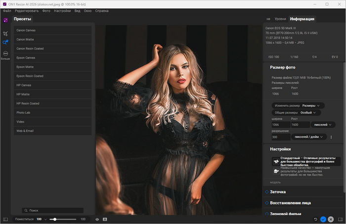 Скачать программу ON1 Resize AI 2026.1 v20.1.0.17740 (197,17 МБ):