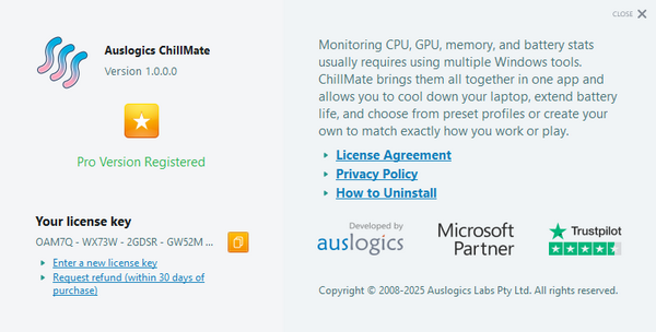 ChillMate — ваш незаменимый помощник, который постоянно отслеживает температуру компьютера, обеспечивая его оптимальную производительность и предотвращая перегрев. Играете ли вы, работаете или просто просматриваете веб-страницы, вы можете быть уверены, что ваш ПК или ноутбук останется прохладным.