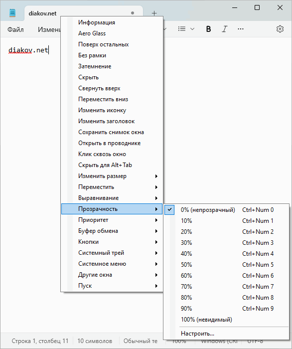 Дополнительные инструменты:- Сделать кликабельным насквозь: Позволяет кликать через окно.