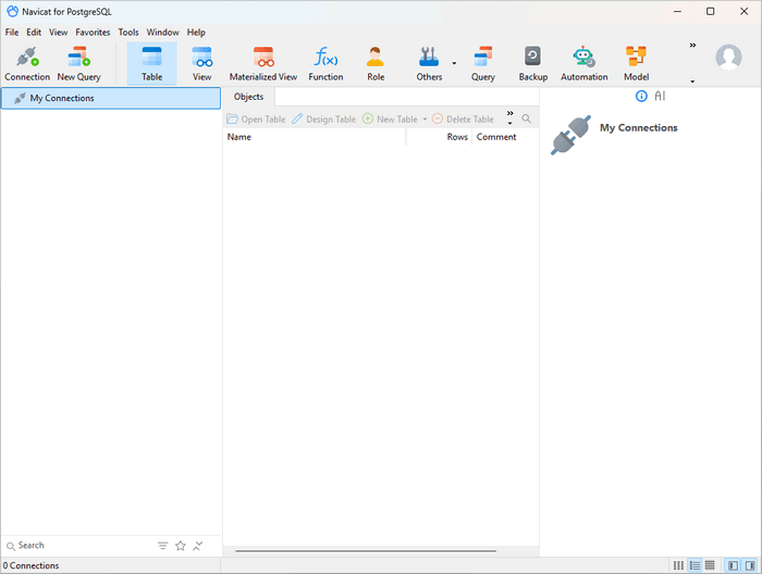 Navicat for PostgreSQL — это простой в использовании инструмент управления базами данных, разработанный для упрощения работы с серверами PostgreSQL. Он позволяет решать широкий спектр задач — от управления большими объемами данных и написания простых запросов до разработки сложных моделей и проведения анализа данных. Navicat for PostgreSQL предоставляет все необходимые инструменты и материалы для бесперебойной работы в графическом интерфейсе.