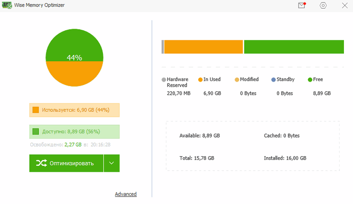 Wise Memory Optimizer - бесплатная утилита для освобождения оперативной памяти, увеличения скорости и улучшения производительности ПК. Позволяет высвободить и настроить оперативную память, занятую бесполезными приложениями для повышения производительности ПК. Проста в использовании, подходит как для новичков, так и экспертам.