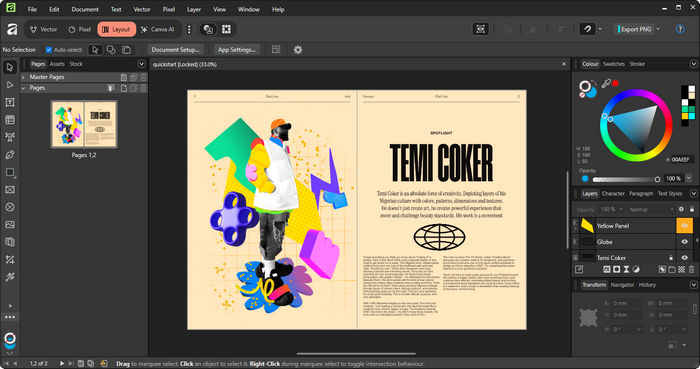 Почему стоит выбрать Affinity:- Один инструмент вместо трёх — Designer, Photo и Publisher объединены.
