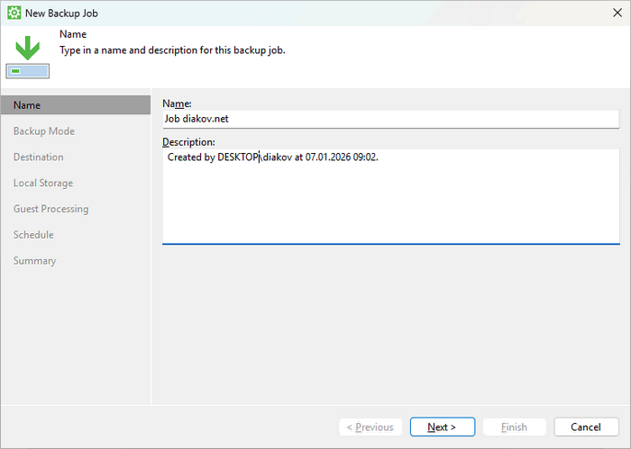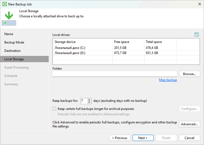 - Возможность бэкапа локально на внешние носители, сетевые хранилища или облачные/репозитории Veeam.