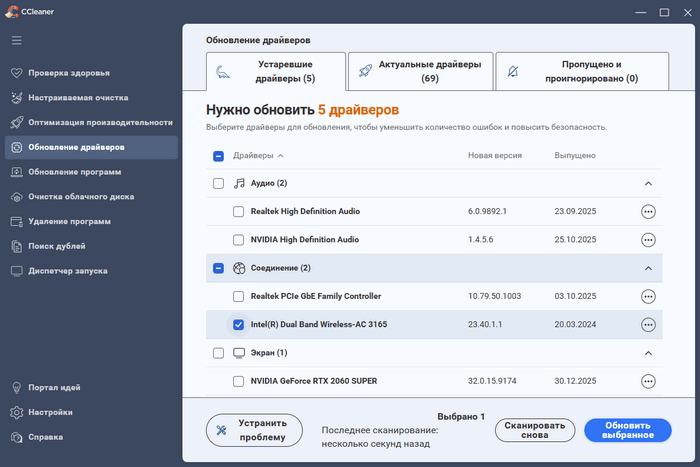Функция PRO обновление драйверов. В CCleaner Professional доступны быстрые и безопасные обновления драйверов — больше нет необходимости приобрести отдельное приложение. Новое средство обновления драйверов (Driver Updater) находит больше надежных и безопасных драйверов, чем встроенные решения, экономит ваше время и избавляет от необходимости искать драйверы в Интернете.