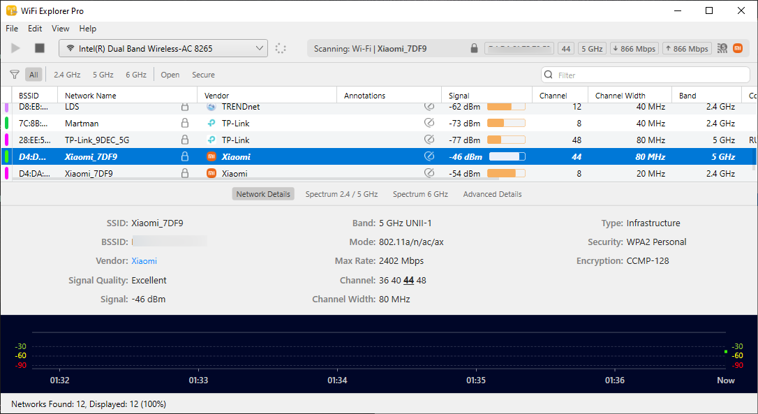 Всегда актуальная версияНезависимо от того, являетесь ли вы техническим энтузиастом, профессионалом или обычным пользователем, с WiFi Explorer Pro для Windows вы всегда будете в курсе последних инноваций в области беспроводных технологий. Приложение поддерживает новейшие стандарты Wi-Fi, в том числе Wi-Fi 6, Wi-Fi 6E и Wi-Fi 7.