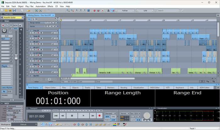 Boris FX Sequoia 2026 — это высококлассная DAW-станция (цифровая звуковая рабочая станция) профессионального уровня для записи, редактирования, сведения, мастеринга, реставрации и вещательного аудио, широко используемая в студиях и на радиостанциях благодаря гибкой работе с многодорожечным звуком, объектно-ориентированной обработке, мощному гибридному аудио-движку, глубоким инструментам восстановления, поддержке сложных форматов и интеграции с вещательными системами.