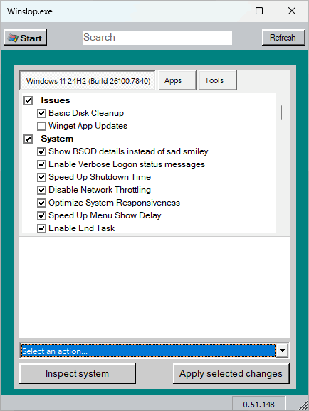 Winslop - инструмент для очистки и оптимизации Windows 11, проект задуман как мини-утилита «по удалению лишнего» (de-slop): он показывает пользователю список встроенных функций, служб, телеметрии, рекламы, AI-элементов (включая Copilot и Recall), предустановленных приложений и других привязанных компонентов Windows 11, и позволяет выбирать, какие из них отключить или удалить, с возможностью просмотра и отмены изменений перед их применением.