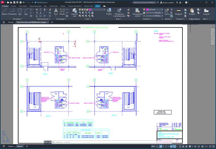 - Извлечение данных. Мастер извлечения данных позволяет быстро извлекать данные из объектов чертежей (включая блоки и атрибуты). Затем эти данные можно автоматически выводить в таблицы или внешние файлы.