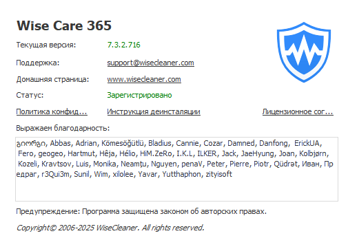 Скачать программу Wise Care 365 Pro 7.3.2 Build 716 (16,05 МБ):