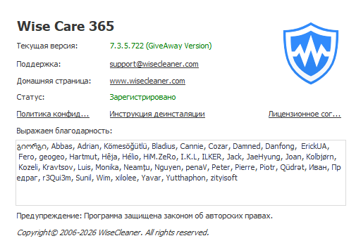 Скачать программу Wise Care 365 Pro 7.3.5 Build 722 (30,16 МБ):