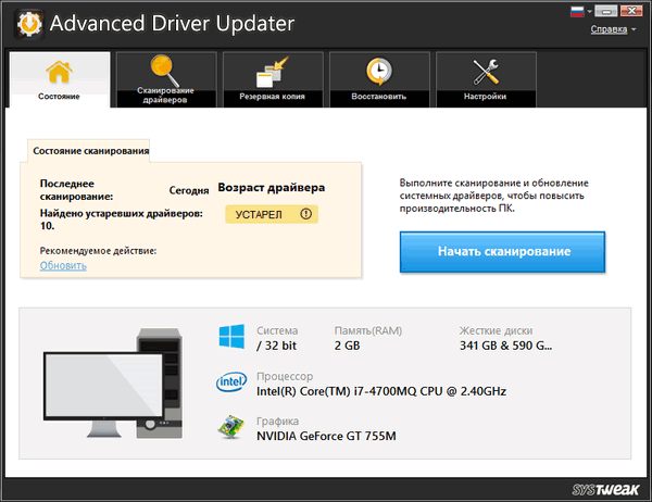 Вы можете начать загрузку драйверов, надёжно и просто. Advanced Driver Updater определяет операционную систему (Windows Vista, Windows 7, Windows 8 или Windows® XP) и выбирает драйверы, подходящие именно для Вашей. Программа может быть особенно интересна новичкам, т.к. не требуется никаких специальных знаний - программа автоматически ищет, загружает и обновляет драйверы.
