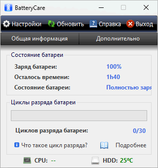 Кроме этого, BatteryCare производит мониторинг температур процессора и жесткого диска и выводит информацию об этом через иконку в системном трее.