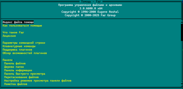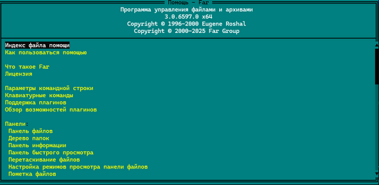 Far Manager — консольный файловый менеджер для операционных систем семейства Windows. Программа предоставляет удобный интерфейс пользователя для работы с файловыми системами (реальными и эмулированными) и файлами.