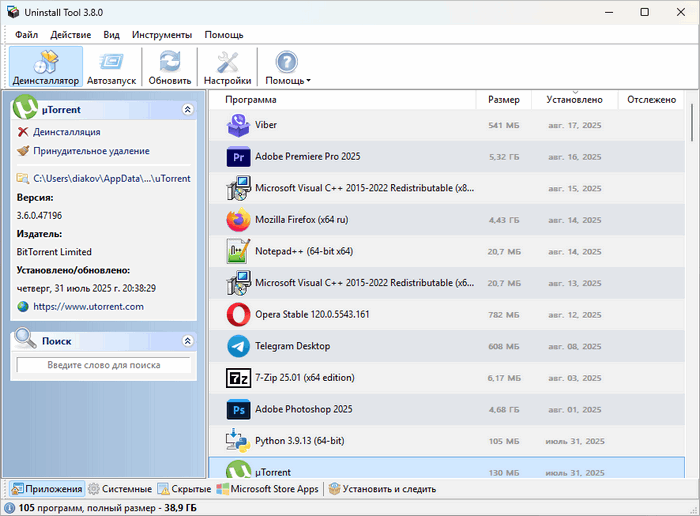 СистемаUninstall Tool 3.8.0 Build 5730