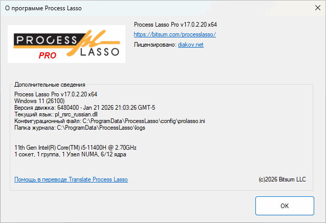 Система ⇒ Process Lasso Pro 17.0.2.20