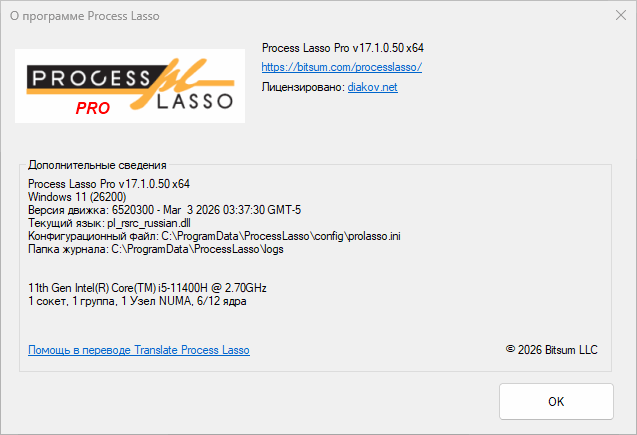 Система ⇒ Process Lasso Pro 17.1.0.50
