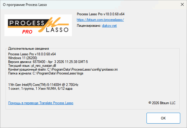Система ⇒ Process Lasso Pro 18.0.0.68