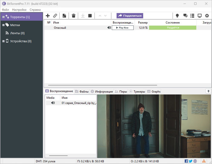• Детальная информация о медиафайлах гарантирует безопасность загрузок в BitTorrent.