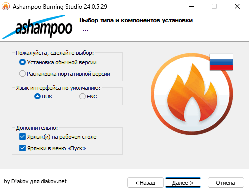 Скачать программу Ashampoo Burning Studio 24.0.5.29 (156,27 МБ):