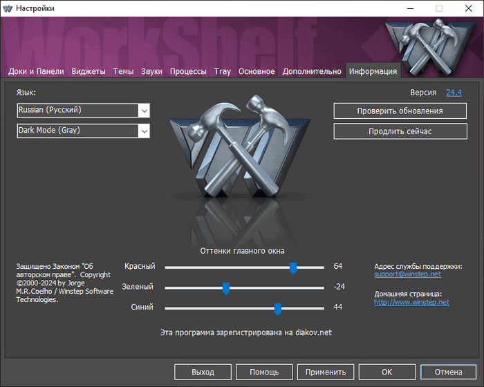 Примерно после 2-3 часов многофункционального использования ПК (игры,музыка,браузер,фильмы) как обычно на панели проги "Winstep Xtreme 20.10" нажимаю на созданный мною под-док в котором ярлыки для игр и вижу что срабатывает эффект и звук но под-док не открывается и все другие под-доки на панели также себя ведут. Далее захожу в Настройки WorkShelf "Winstep Xtreme 20.10" и вижу что надпись во вкладке "Информация" гласит от 30 дневном использовании, а надпись "This software is registered to diakov.net" исчезла просто!