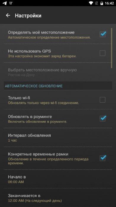 - Интервалы автоматического обновления: 15, 30 минут, 1, 3, 6, 9, 12 часов или обновление вручную.