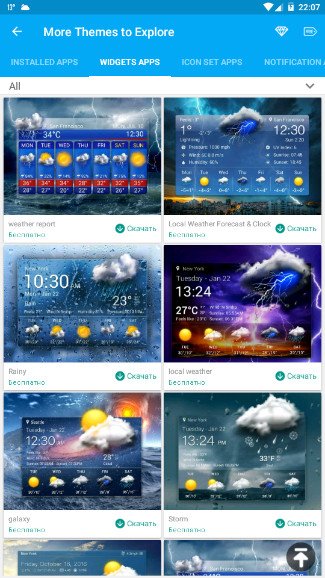 • Более 70 виджетов разной величины и стиля для экрана “домой” (возможность попробовать виджет перед его приобретением)