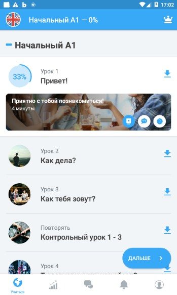 Примечание:Чтоб пользоваться программой, нужно создать аккаунт, хоть под любыми данными, не требует подтверждения, выбрать "продолжить", и вам будут доступны все уроки, а также с возможностью скачать их, чтоб пользоваться без интернета!