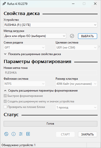 Данные и диски ⇒ Rufus 4.11 Build 2285 Final