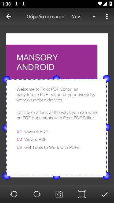 Программу удобно использовать для сканирования многостраничного документа. К достоинствам Mobile Doc Scanner можно также отнести и то, что программа корректно определяет границы сканируемой области и компенсирует искажения, вызванные коррекцией перспективы.